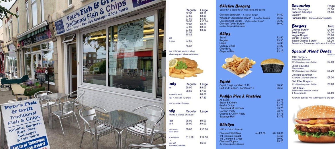 We have been using Pete's for a few months but w after being recommended. We love it. Huge portions, lovely friendly service. When there has been a minor issue like something. Forgotten, it is replaced on the next order. Fish feast is plenty for two people, curry sauce is good. There are not enough words to say how fab they are. Thank you all
